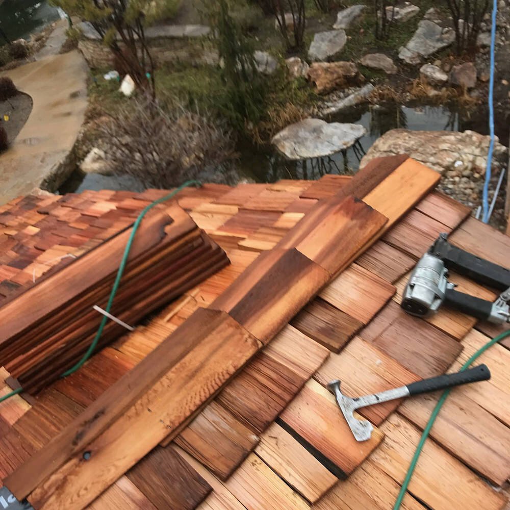 Asphalt shingles, Wood shake, or Metal roof, we also do flat roofs on residential or commercial buildings.
